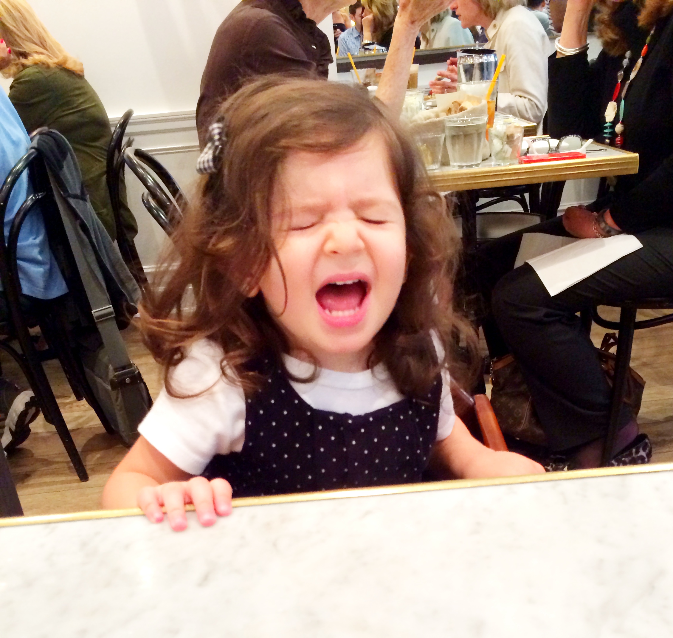 Then suddenly came the day, right after her 2nd birthday. It started with a few NOs here and there. In the beginning, we found this super cute, even smart. We were caught-up in making sure that she was meeting all her developmental milestones and were very pleased to check off: better expression skills, better communication and ability to make choices. We thought a strong character might come in handy in the future if she wants to survive a wild environment (like New York City for instance). However, the NOs started getting more and MORE frequent, more and more DOMINANT, until I started noticing it became chronic. Hélas, my daughter was now only speaking in the negative tense! “NO I don’t want the potty”, “NO I don’t want to eat yogurt”, “NO I don’t want to clean up after playing”, “NO I don’t want to go in the stroller”, “NO I don’t want to say Merci/Bonjour”…So we were spending a big chunk of our days just dealing with her “no no no no no no no no no no” (which is one way for her to say No).