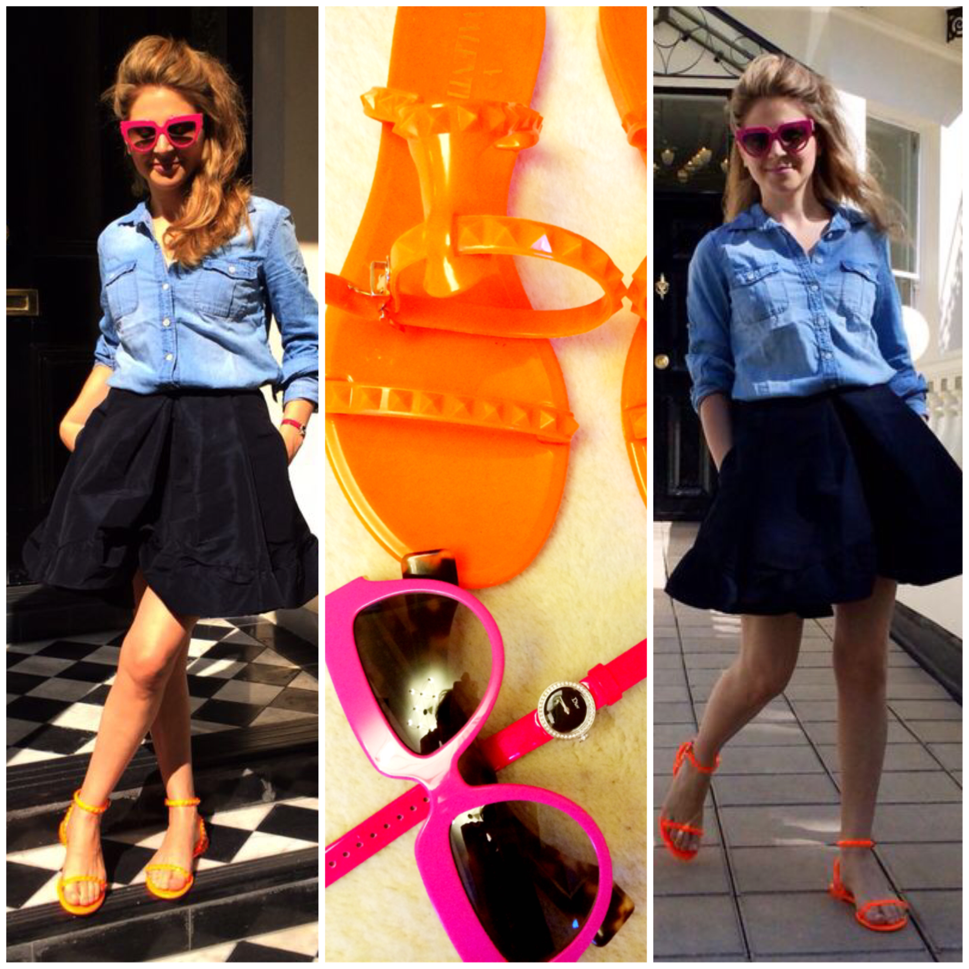 Yesterday was Summer’s official kick-off and London did not disappoint! Parks drizzled with sunbathers, pub terraces packed, sunnies and hats competing in size and funkiness (yes hats! it’s London people & the Royal Ascot mood is spilling onto the streets!) and fashionistas out and about in their flashiest colors and shortest outfits… For my first day, I kept it relatively under control and left it for my neon accessories to shout: “Welcome sunny time! it’s about time!”