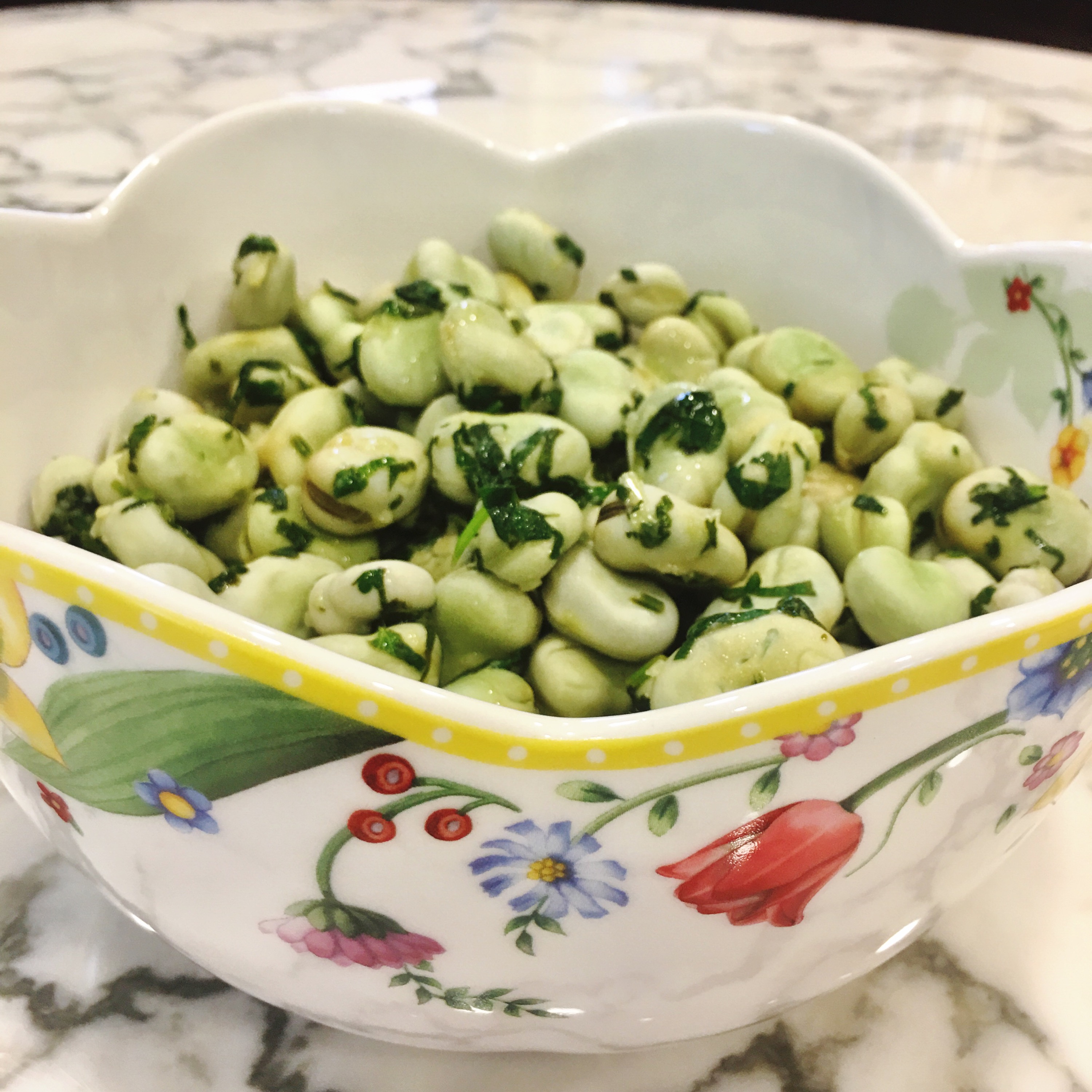 It’s a great comfort coming back home after holidays to healthy home food. Having been in the French capital for more than a week, our family had a large dose of croissants for breakfast, French onion soups for lunch, macarons and chocolate for afternoon snack and cheese and wine for dinner. Today, I couldn’t think of a better side salad to accompany our spinach stew dish, a great choice to help get us back to our healthier yet delicious food routine. I found those fresh yummy fava beans in a local organic market, yes they are in season at the moment! I steamed the beans, mixed them with the rest of coriander and garlic paste I used for the spinach stew, added some olive oil and lemon juice and voilà! The tastiest in-season-salad.😋