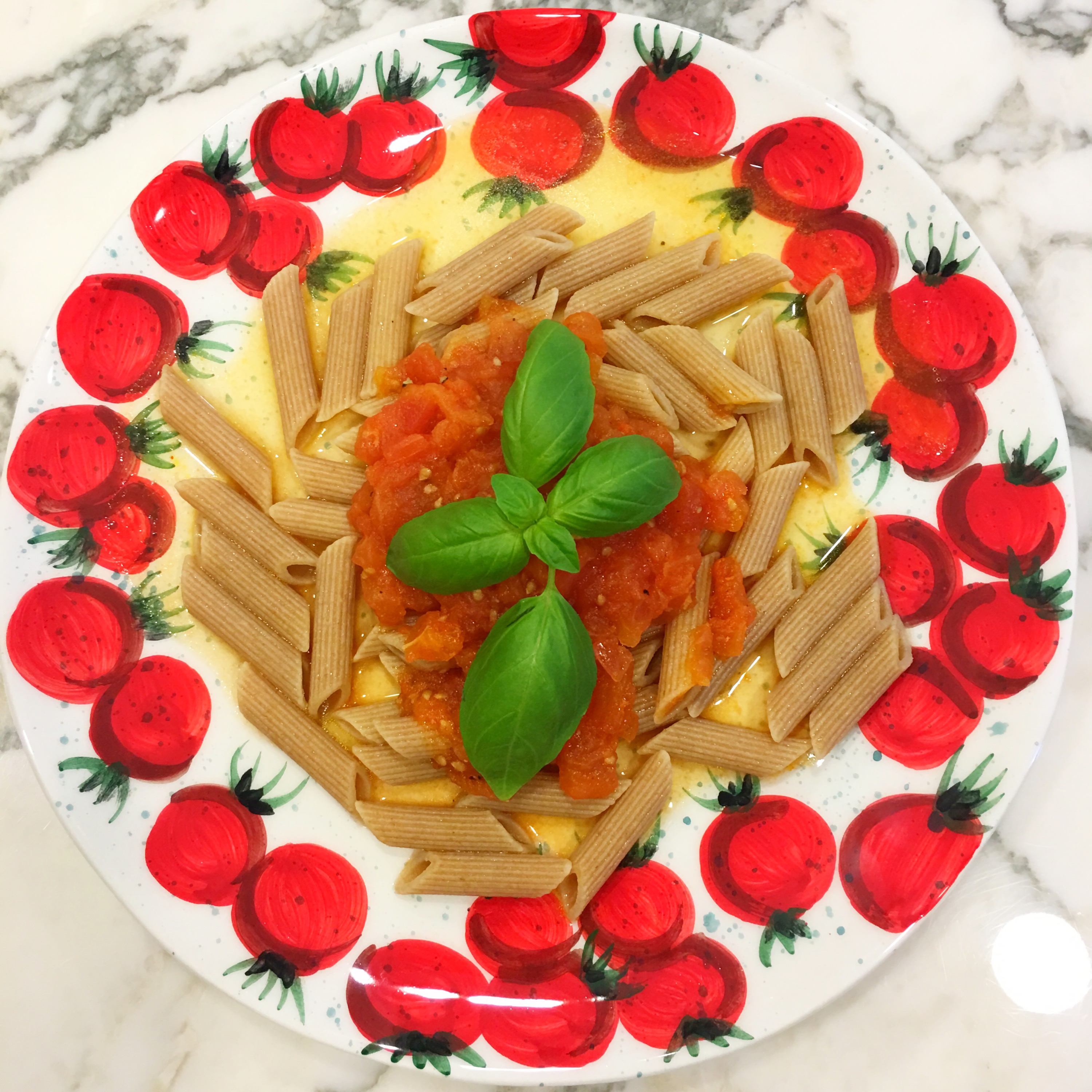 Serve pasta with sauce on top or mixed. Garnish with basil. #SimplyYummy #LessIsMore!