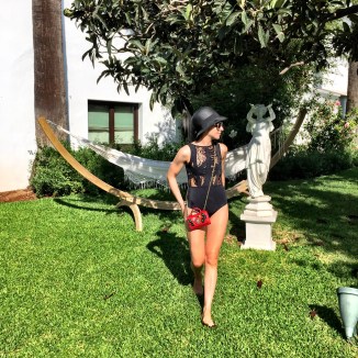 OOTN está listo! Everyone likes a little black dress with statement accessories for a night out, hence I thought that I’d mimic that classic LBD look for my beach party. A little black swimsuit and a recent D&G stone studded clutch purchase I didn’t get a chance to style yet. Of course since the sun will still be up (it gets dark ridiculously late in Marbella) hat + sunnies are a must to make a decent entrance (+ protect from the sun!)😉