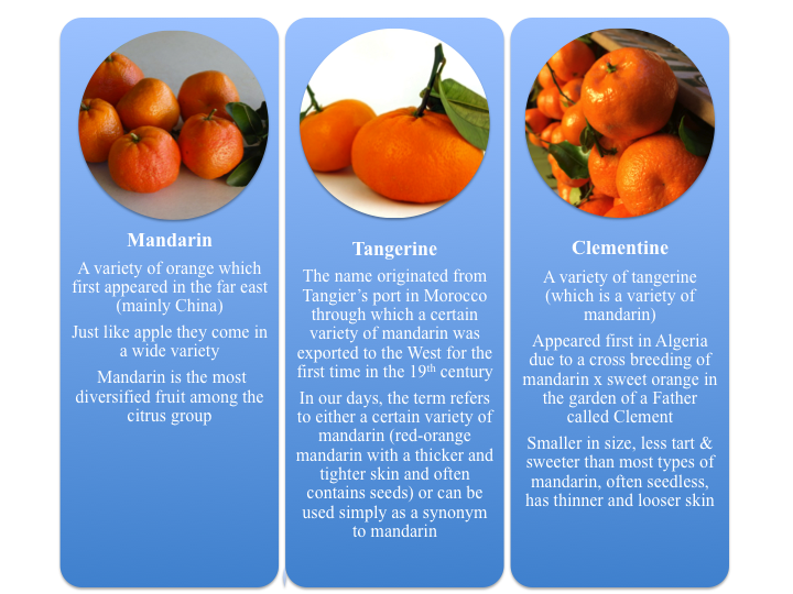 Mandarin, Tangerine and Clementine can look pretty similar but each has a unique history & distinctive characteristics